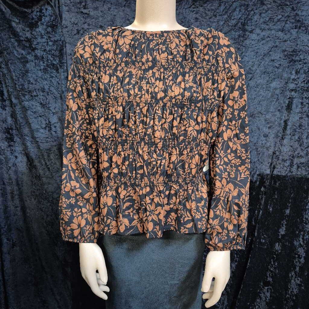 This light balloon style blouse with four gathering middle sections and at the wrist. Is sure to flatter your Fall wardrobe.