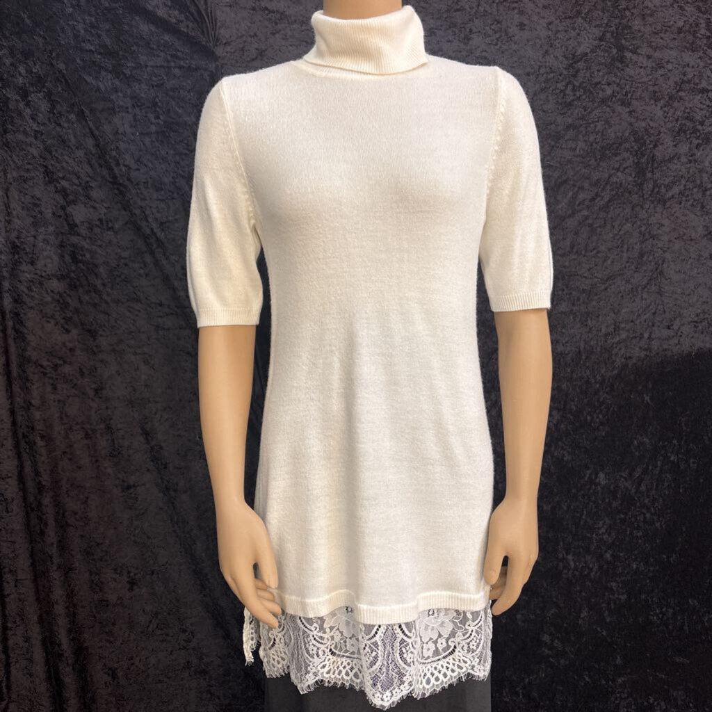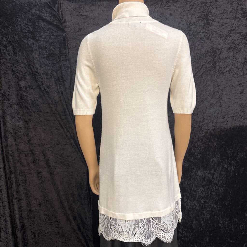 Stylish APT.9 women's sweater in white featuring a lace hem. Perfect for layering or casual wear.