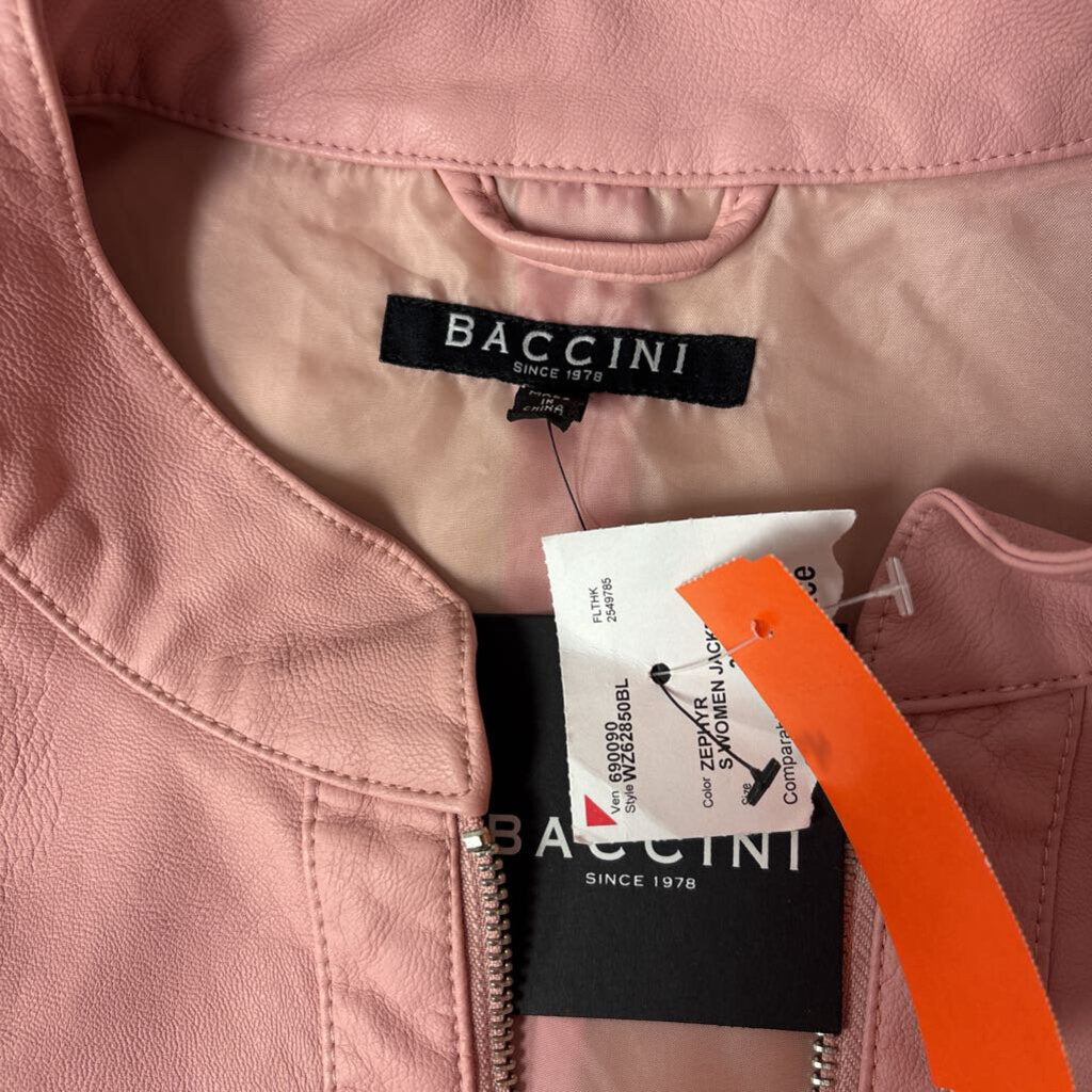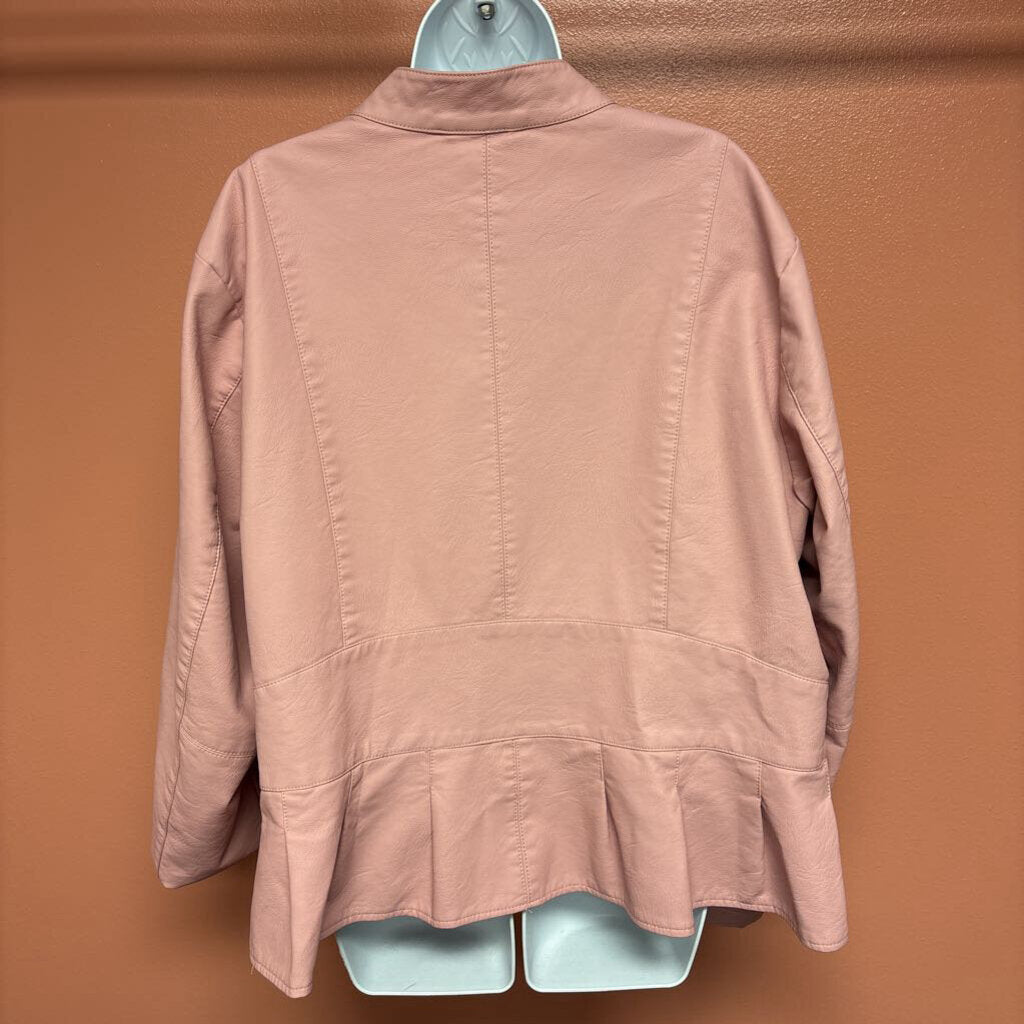 baccini faux leather ruffle bottom Women's Jackets 3X pink