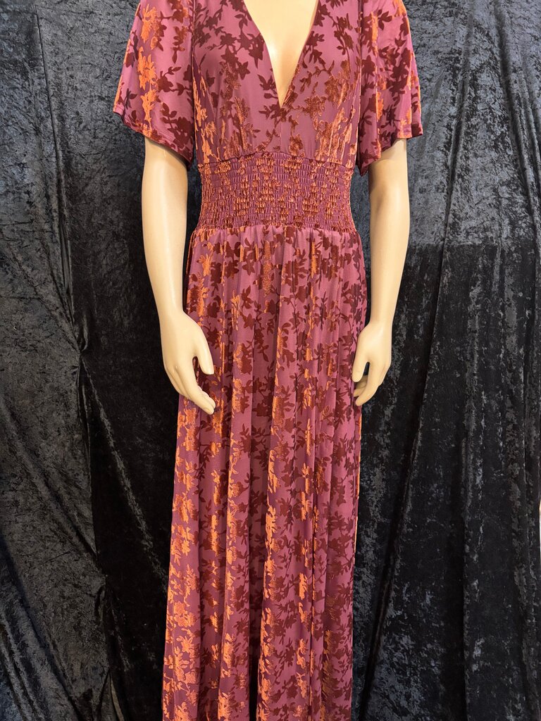 baltic born Floral Print Maxi Dress in Burgundy and Orange Women's Dresses large Burgundy