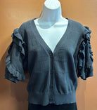 calligraphie button ruffle short sleeve Women's Cardigans large black