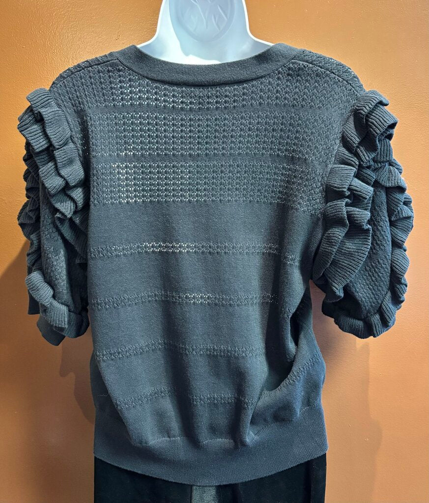 Calligraphie ruffle sleeve cardigan in black. Size L.