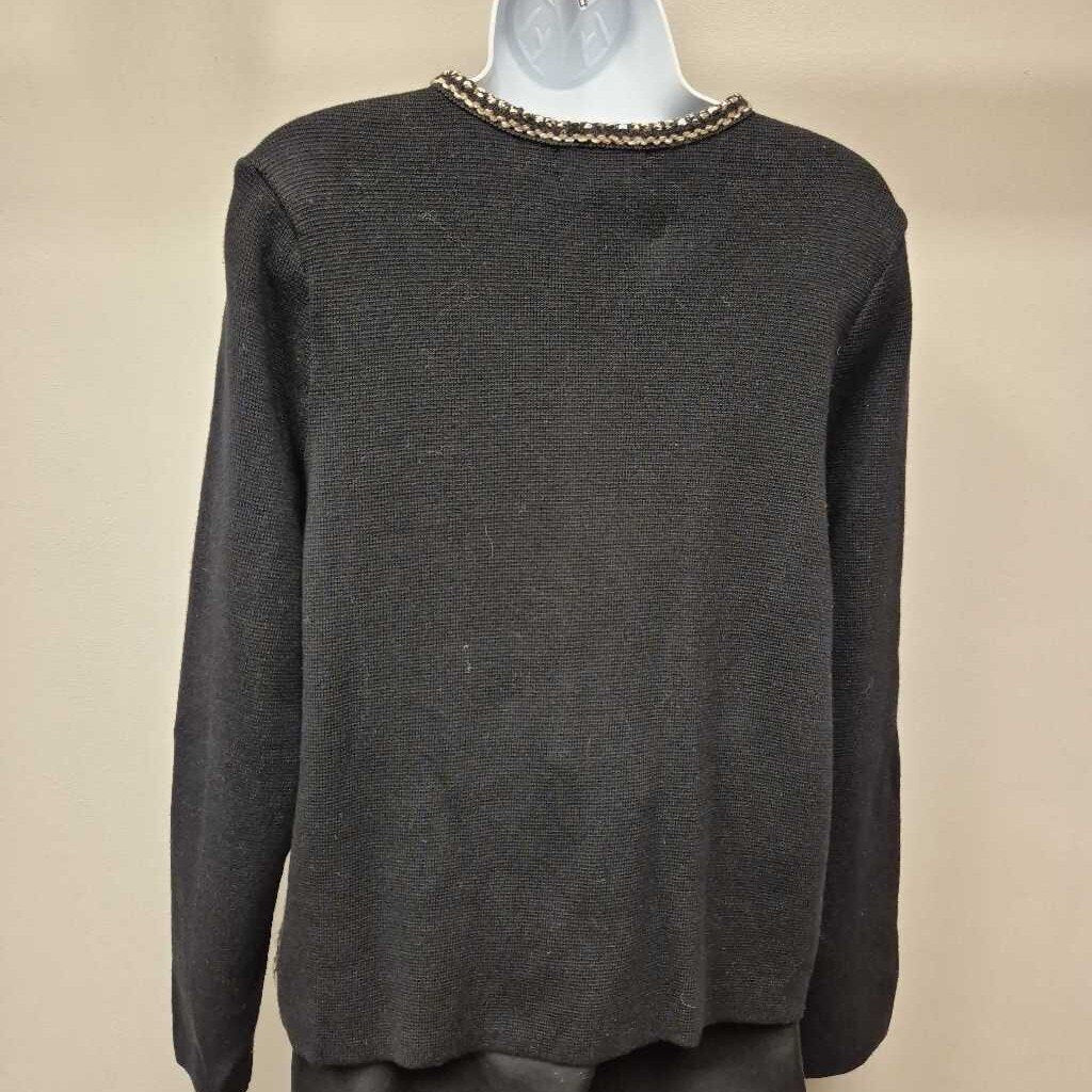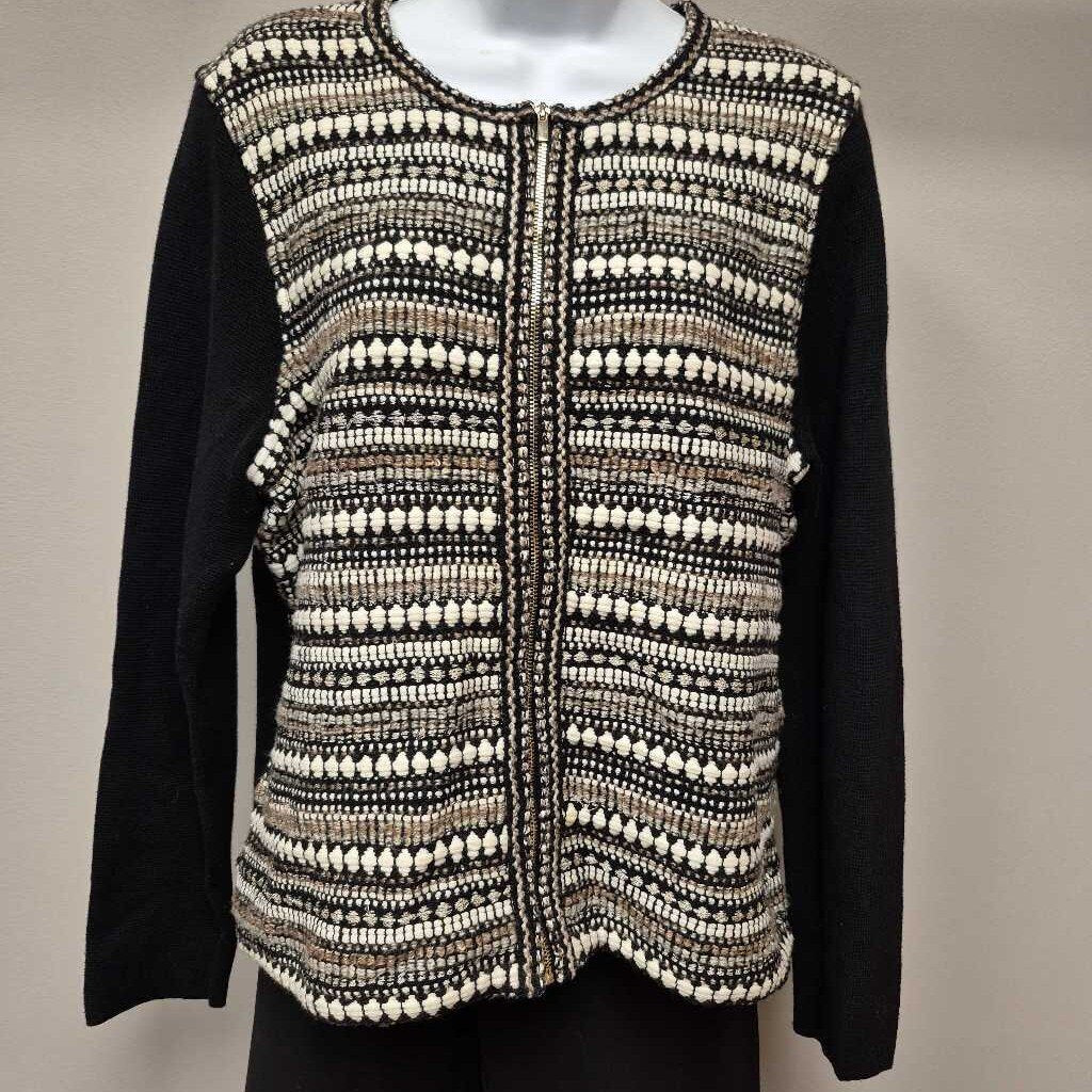 Charter Club Black sweater with front zip/print Women's Sweaters L black