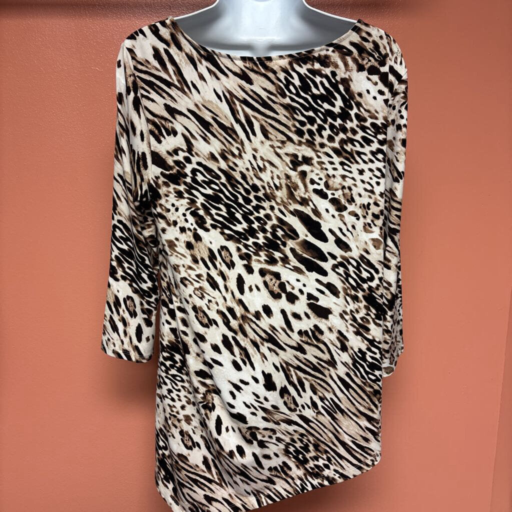 chicos Patterned Scoop Neck Women's Shirts medium brown
