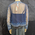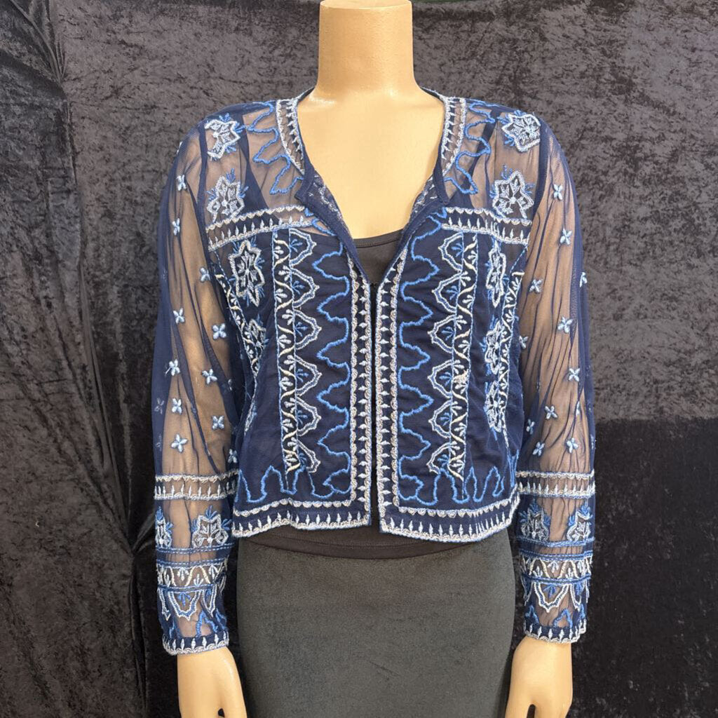 chico's Sheer Floral Embroidered Bolero Women's Shirts S Navy Blue & White