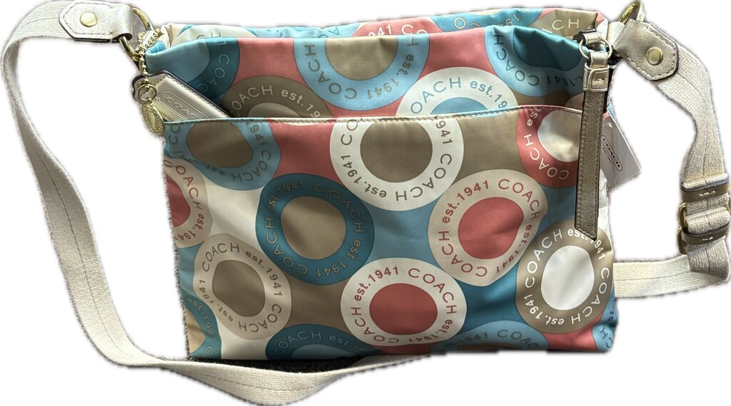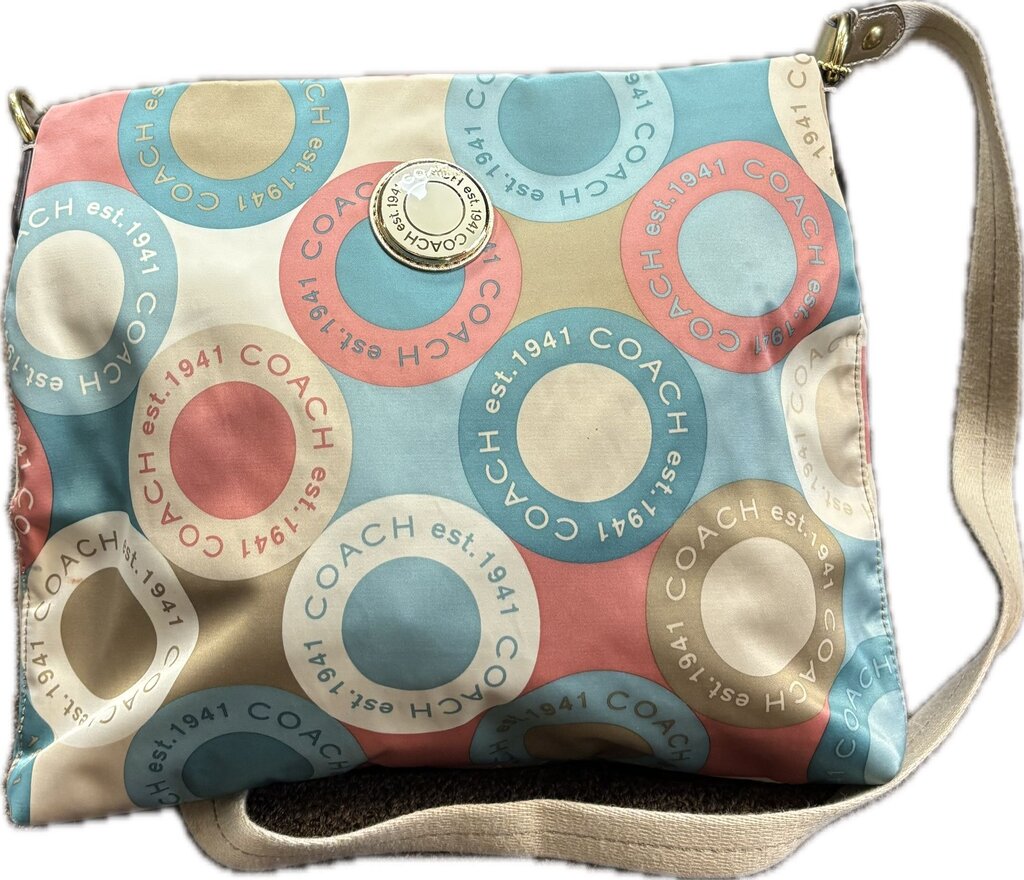 A stylish and functional crossbody bag by Coach with a unique print. Perfect for everyday use.
