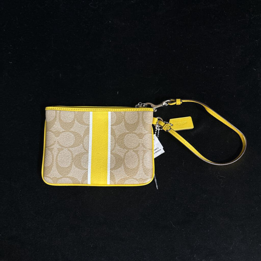 Coach signature wristlet Women's Designer Handbags tan, white, yellow