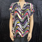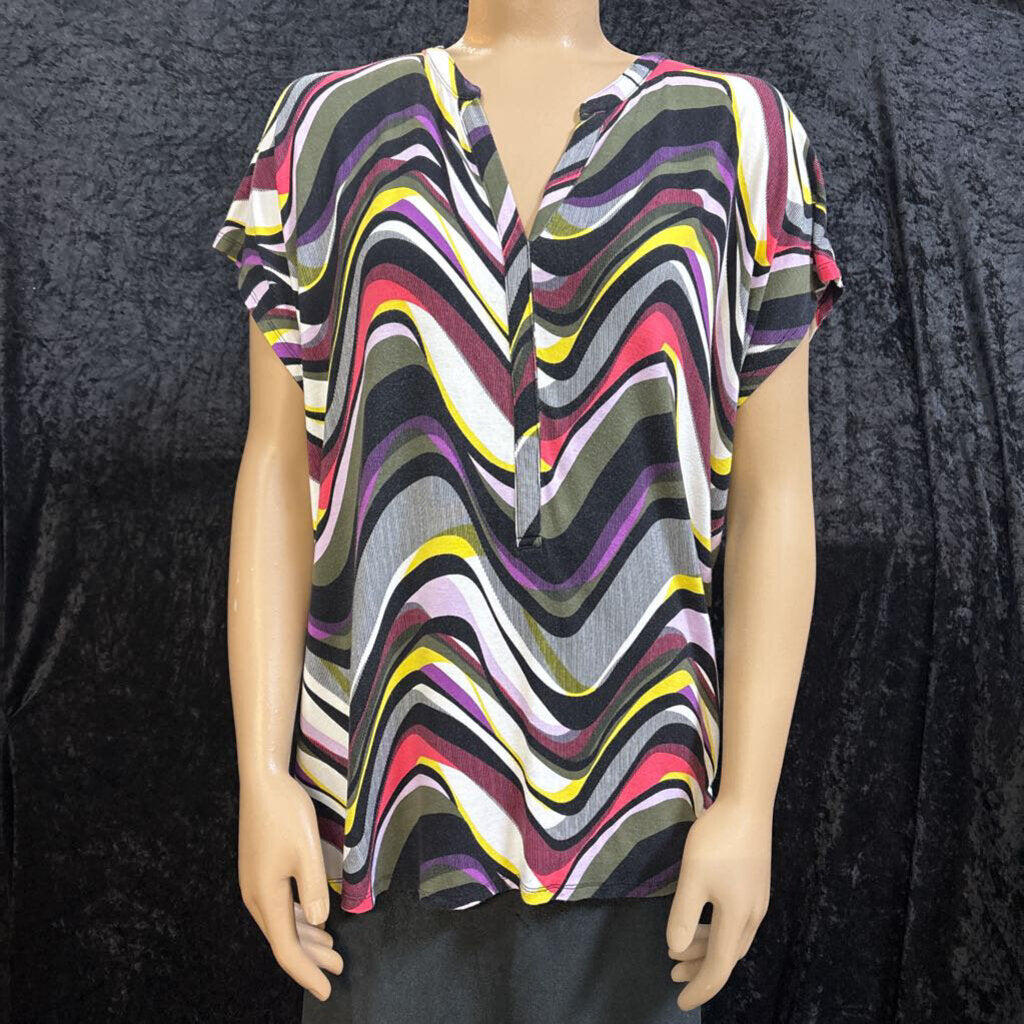 Dana Buchman swirl design sleeveless v neck Women's Shirts XL pink, white, black, yellow