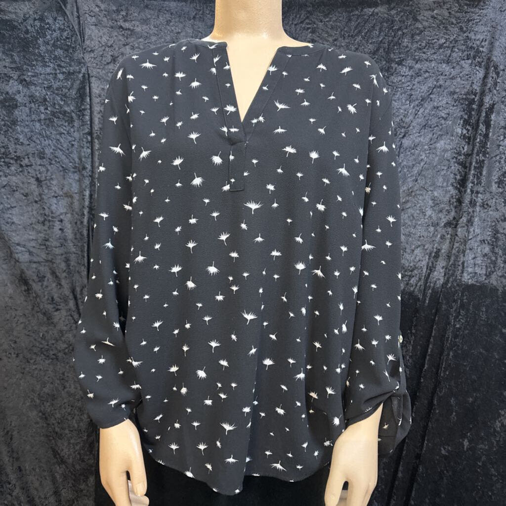 DANIEL RAINN Tab sleeve dandelion split v neck Women's Shirts XXL black, white
