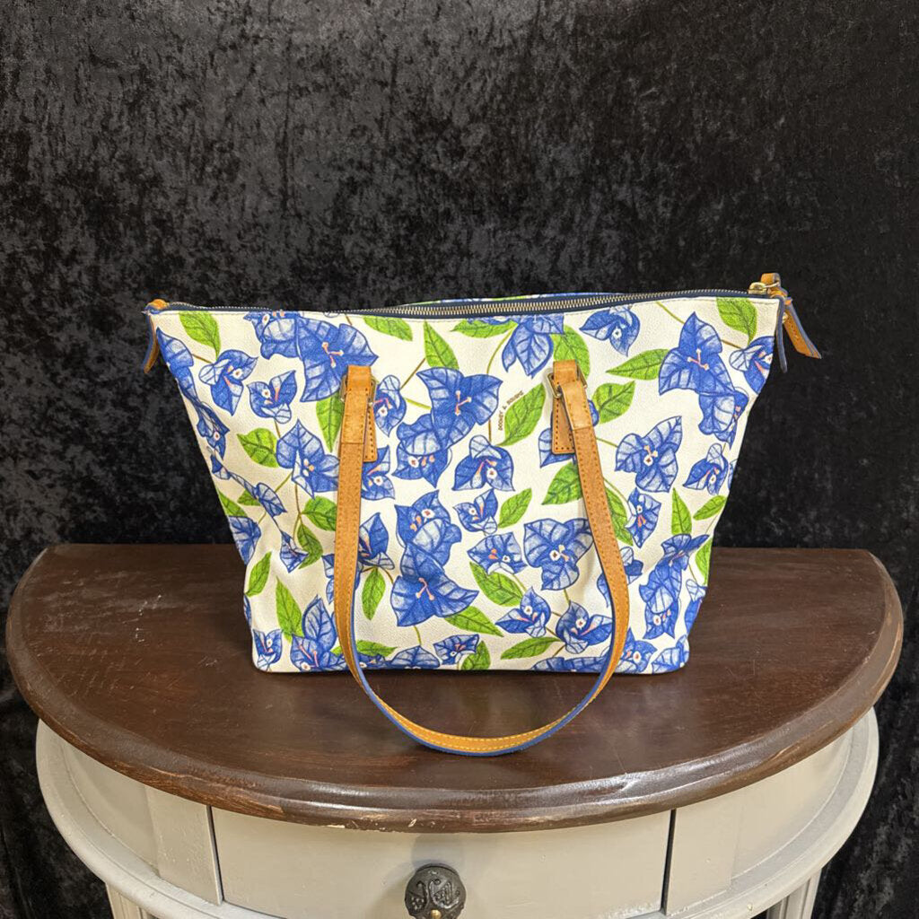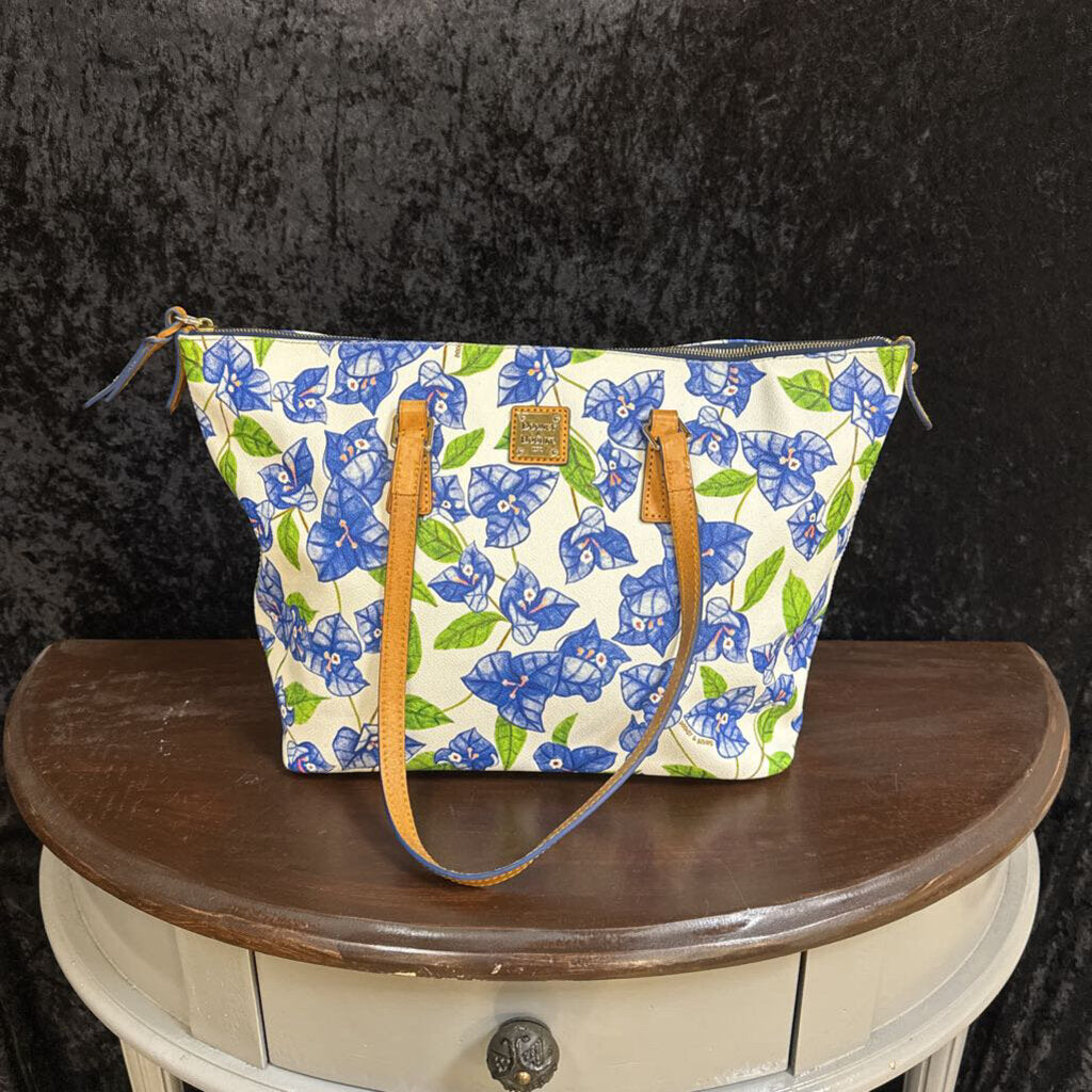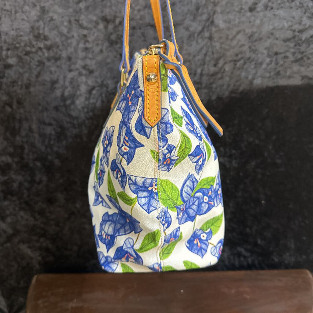 Dooney & Bourke Floral Large Shoulder Tote Women's Designer Handbags White/Blue/Tan