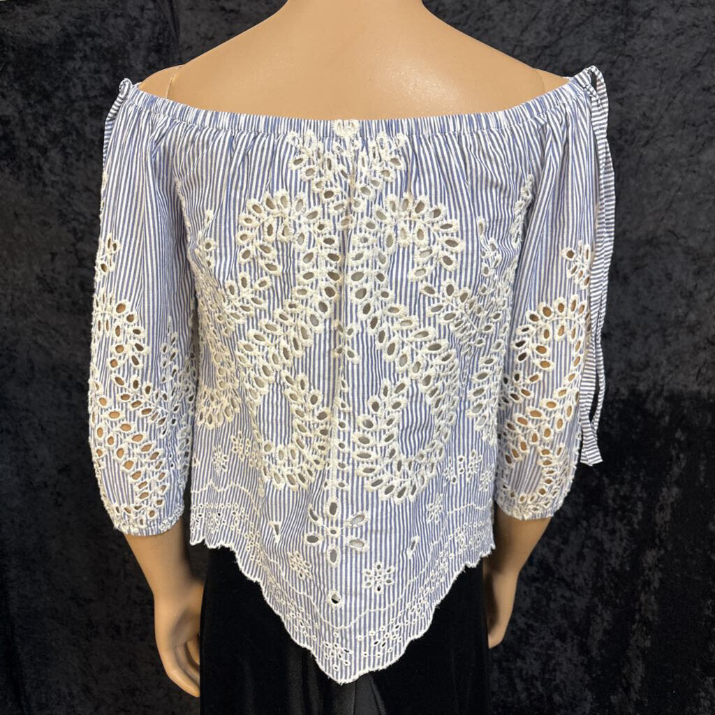 express Eyelet Striped Women's Shirts Extra Small Blue/White