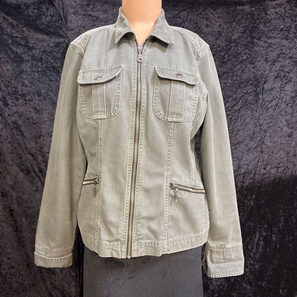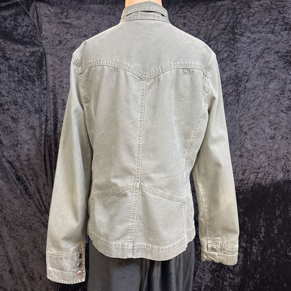 french cuff Jean Jacket Zip Up Women's Jackets M Green