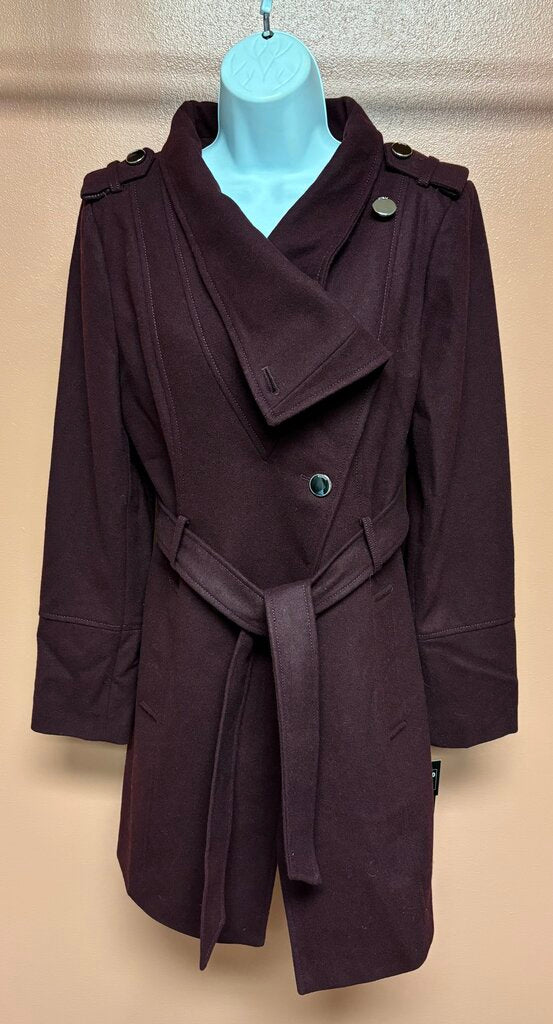 guess Belted Burgundy Coat with Silver Women's Coats M burgundy