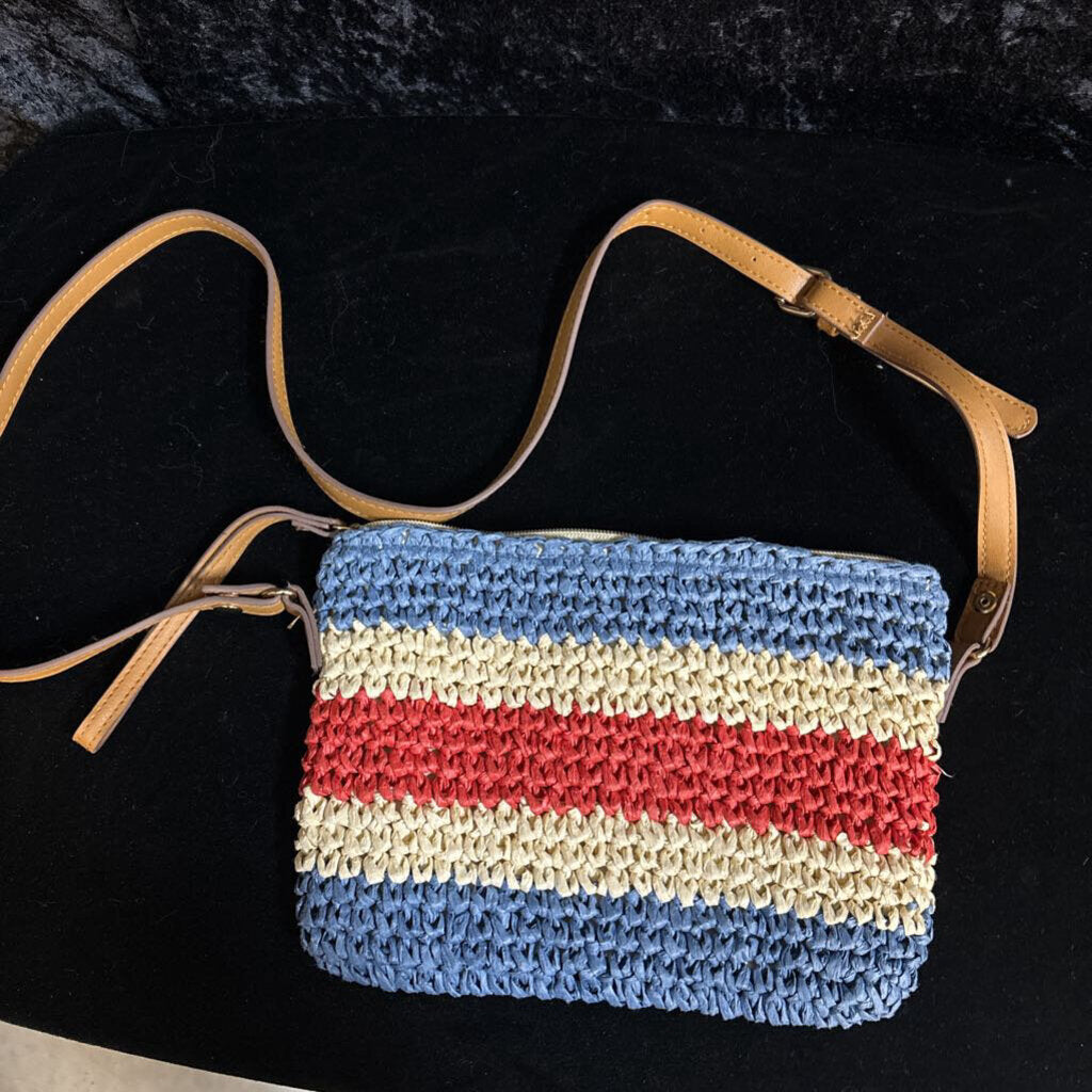 INC Striped Long Shoulder Women's Handbag Tan/Red/Blue