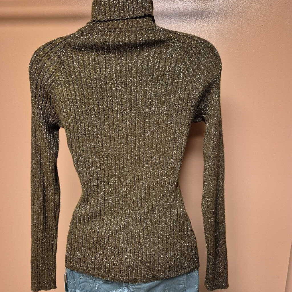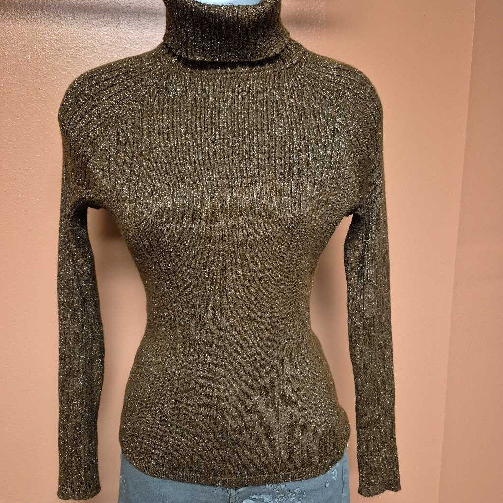 INC turtleneck gold shimmer Women's Shirts medium petite brown/gold
