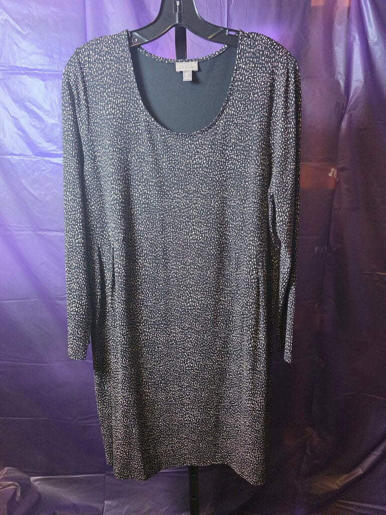 jjill Black and White Printed Long Sleeve Dress Women's Dresses Large black and white