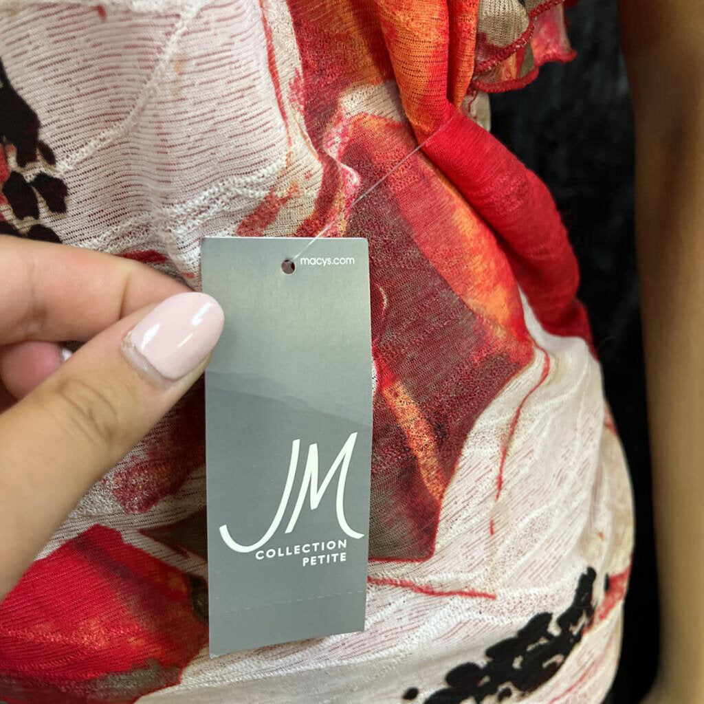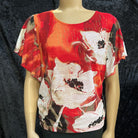 JM Collection Large Flower Print Short Sleeve Women's Shirts Medium Red