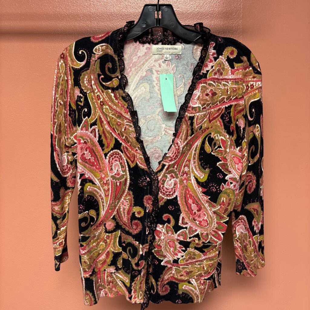 Jones New York Vneck With Pockets Women's Cardigans large pink/black