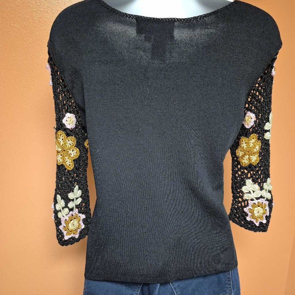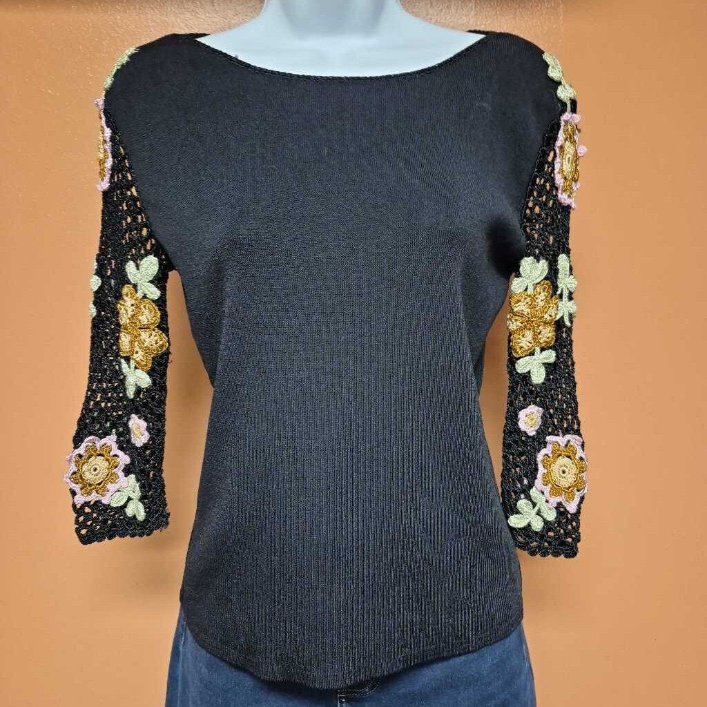 Joseph A knit sleeves w/flowers Women's Shirts small black