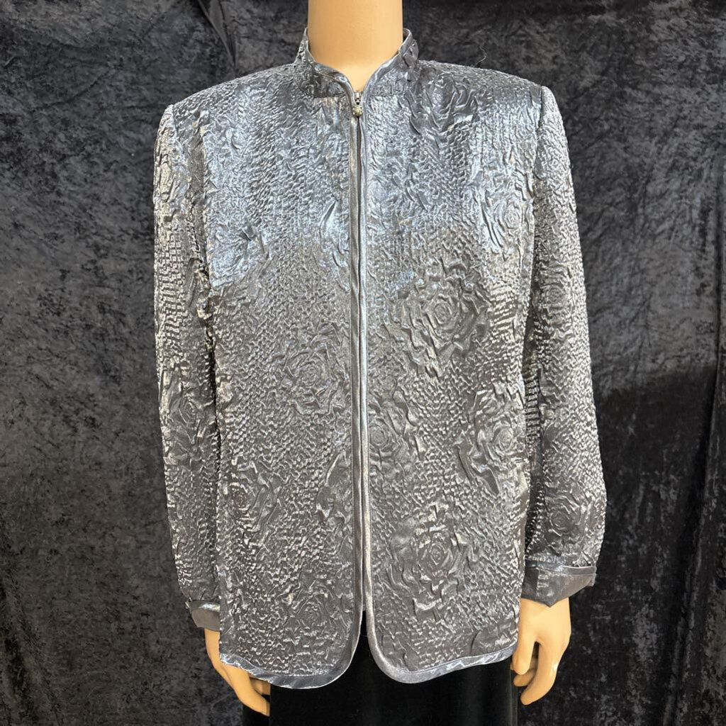 Laura Ashley Crinkled fabric full zipper with stand up collar Women's Jackets XL Silver/gray