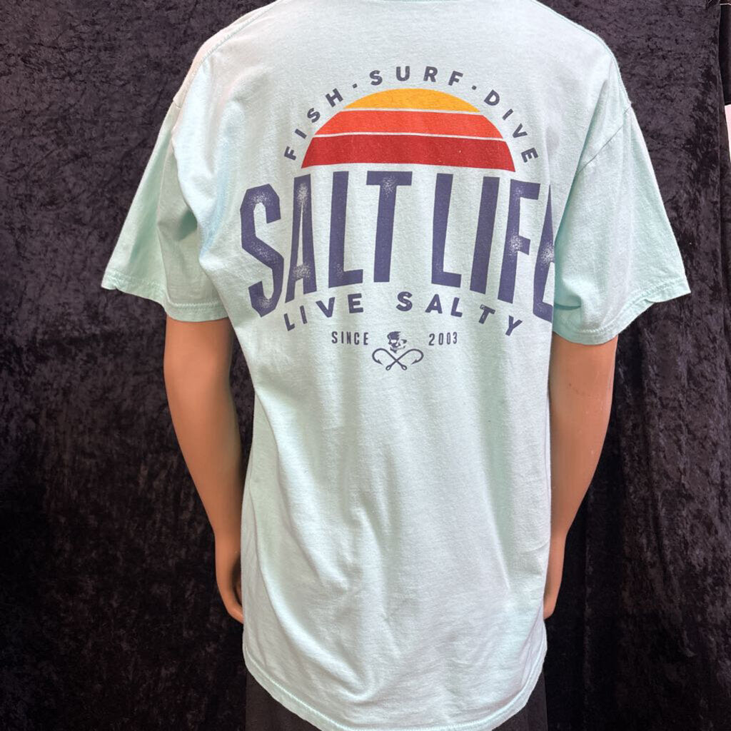 live salty 100% cotton short sleeve pocket tee Women's Shirts M mint black