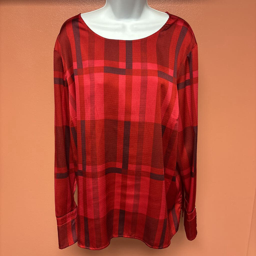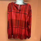 Stylish and comfortable Liz Claiborne red plaid top in a flattering cut perfect for casual outings.
