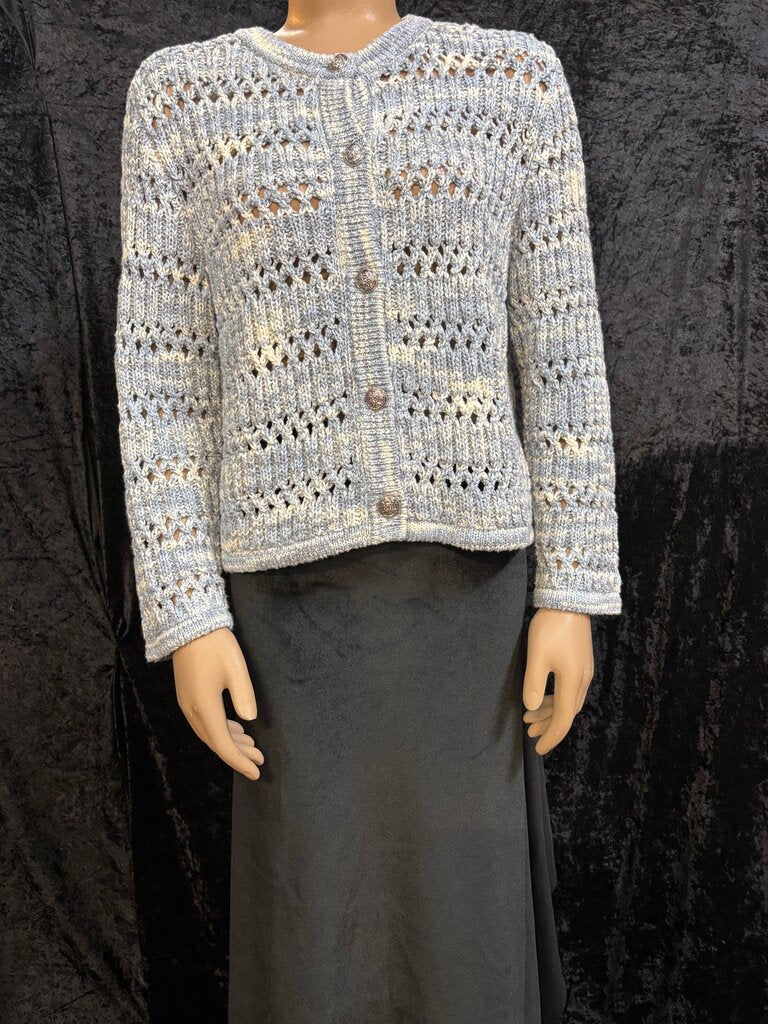 Loft Women's Knit Cardigan Sweater Women's Sweaters medium blue/white