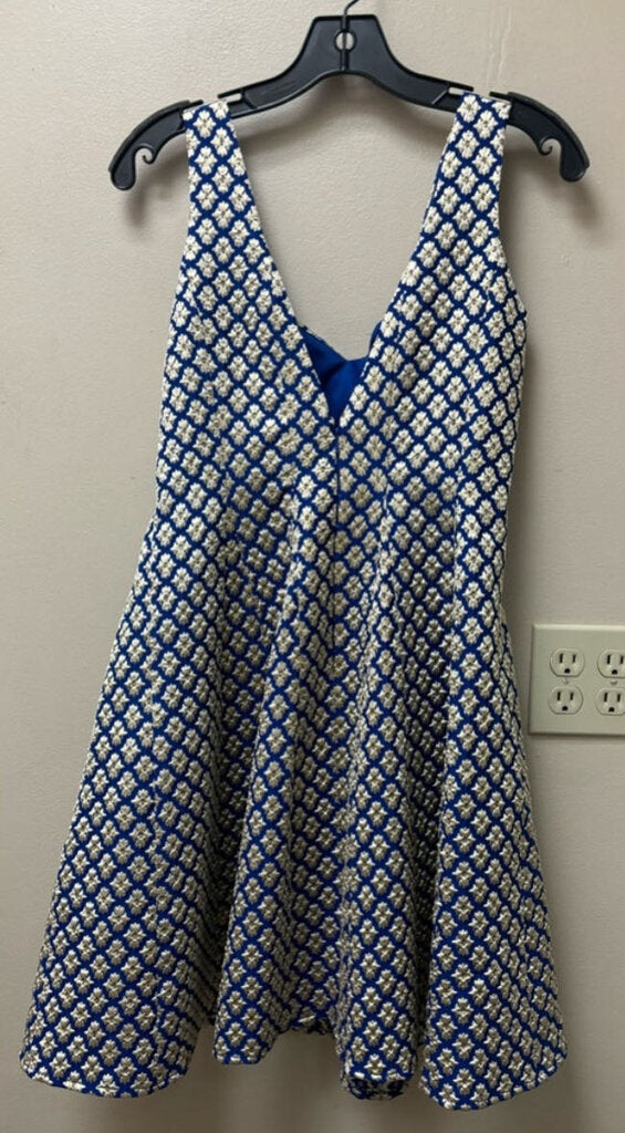 minuet Sleeveless V front & back cut neckline Women's Dresses Blue/Cream/Gold