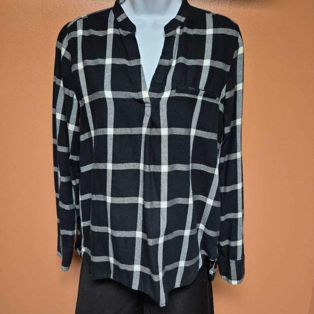 Old Navy Plaid Long Sleeve Women's Shirts Small White/Black