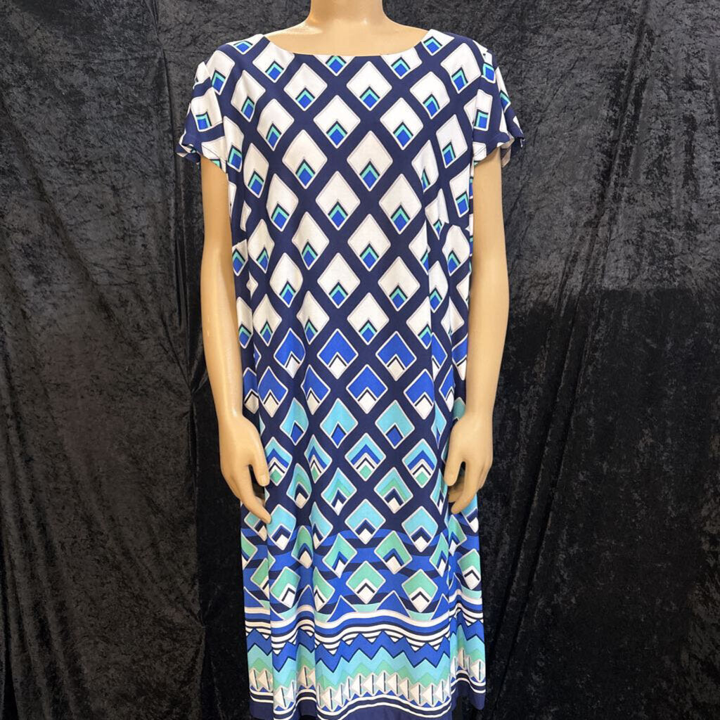 R & K diamond patterned cap sleeve Women's Dresses 16 navy, white, green