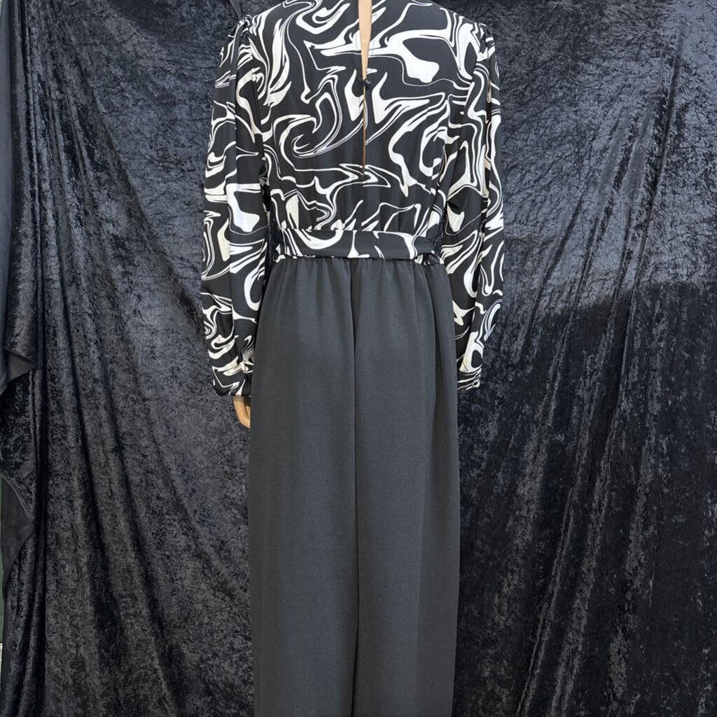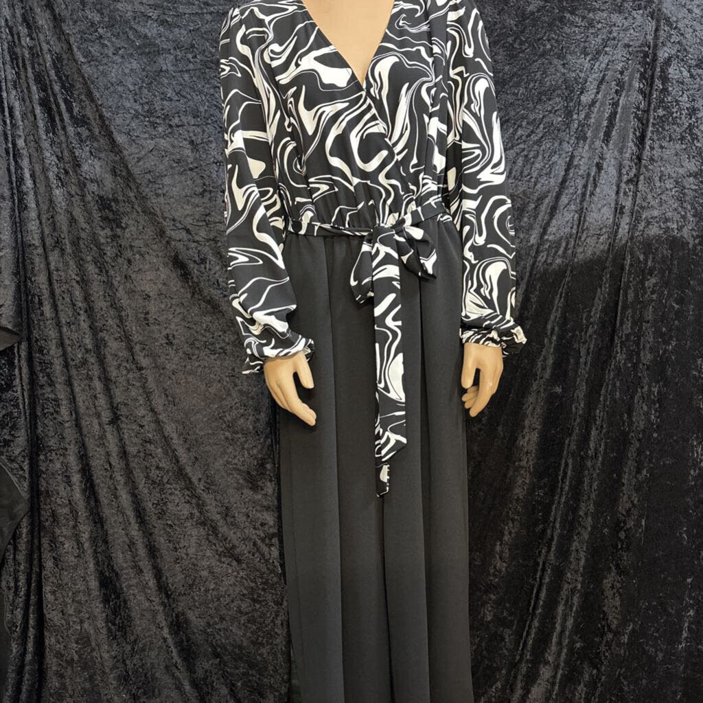 shein curve Swirl Pattern Tie Waist Women's Rompers & Jumpsuits 1XL black/White