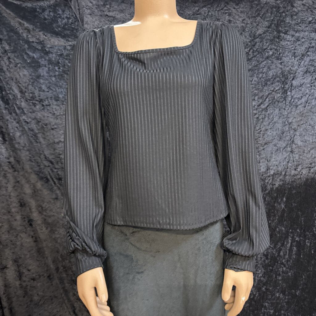 shein Ribbed Square Neck Long Sleeve Women's Shirts L Black