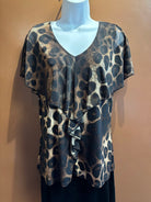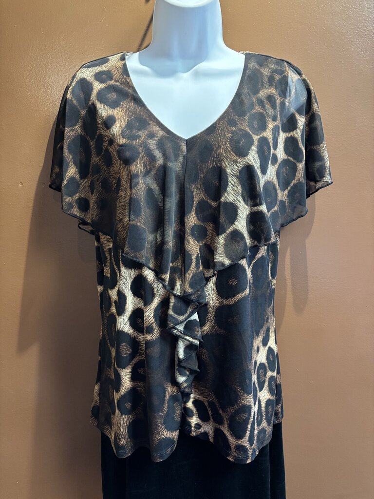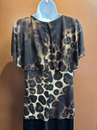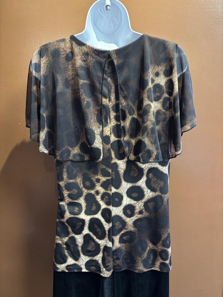susan Lawrence leopard sheer short sleeve Women's Shirts small black/brown