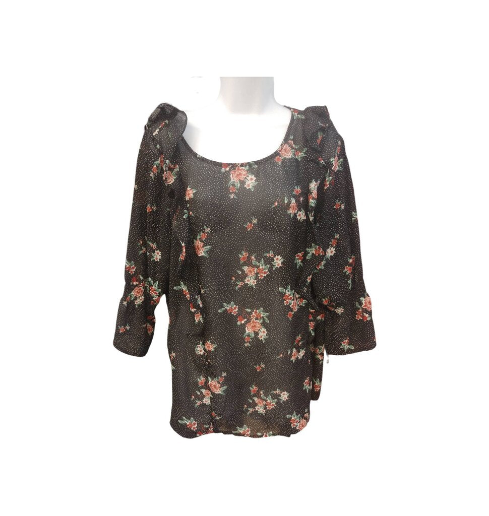 torrid Floral polka dot Sheer Women's Shirts Medium black