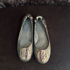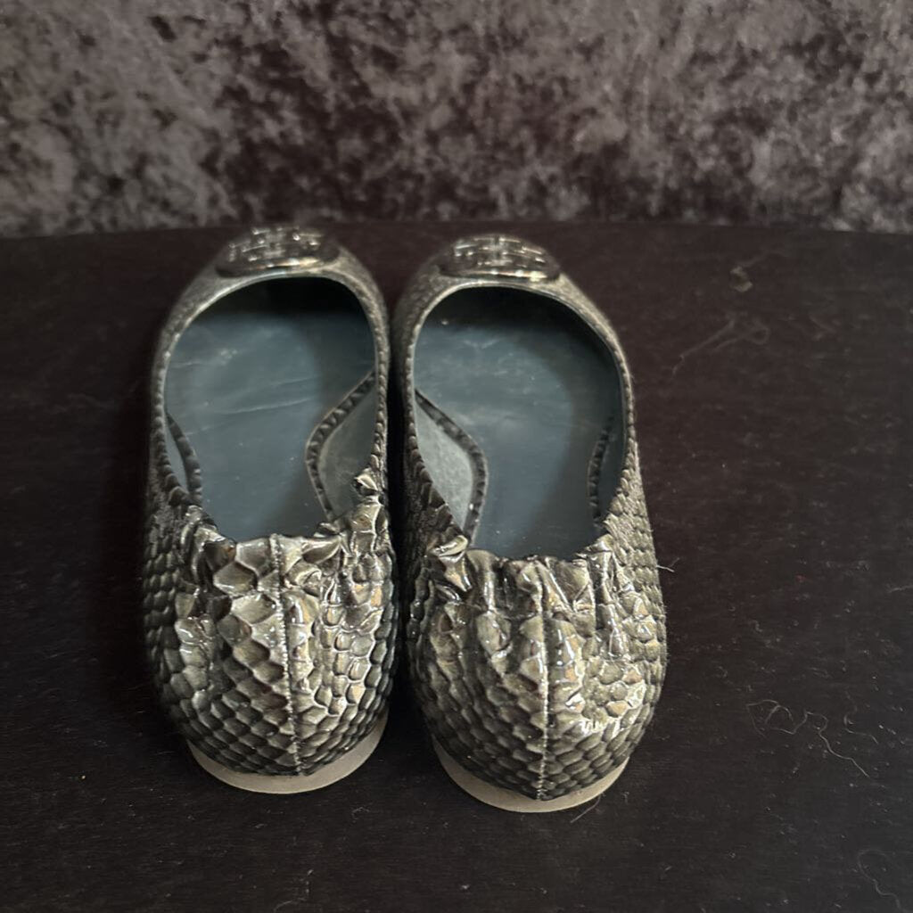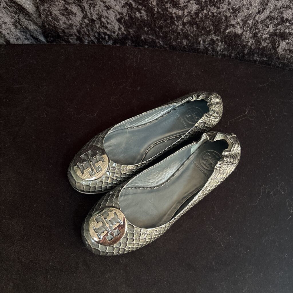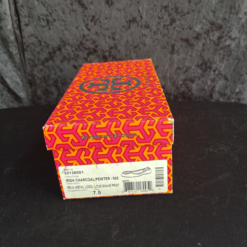 Tory Burch Litus Snake Print Flats Women's Designer Footwear 7.5 Charcoal