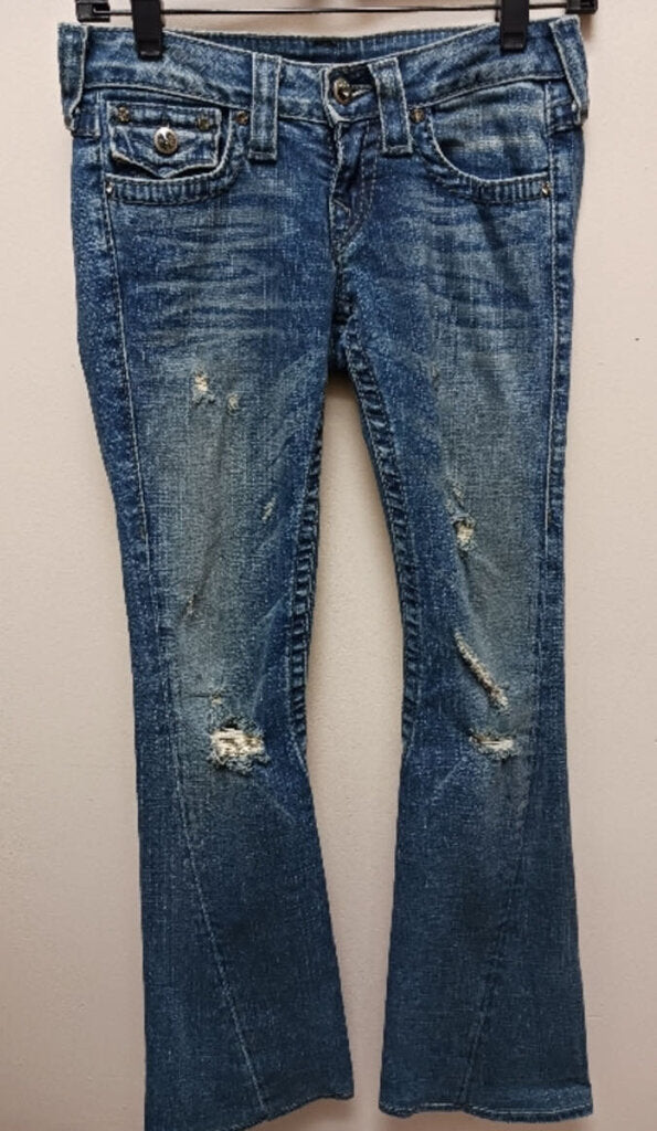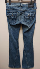 True Religion Distressed Bell Bottom with Gemstone Women's Jeans 24W blue