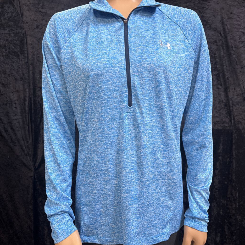 under amour loose 1/4 zip shirt Women's Sports Wear L light blue, white, black