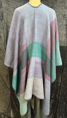 A vibrant multicolored knit poncho wrap perfect for layering in cooler weather. Soft and stylish, this piece adds a unique flair to any outfit.