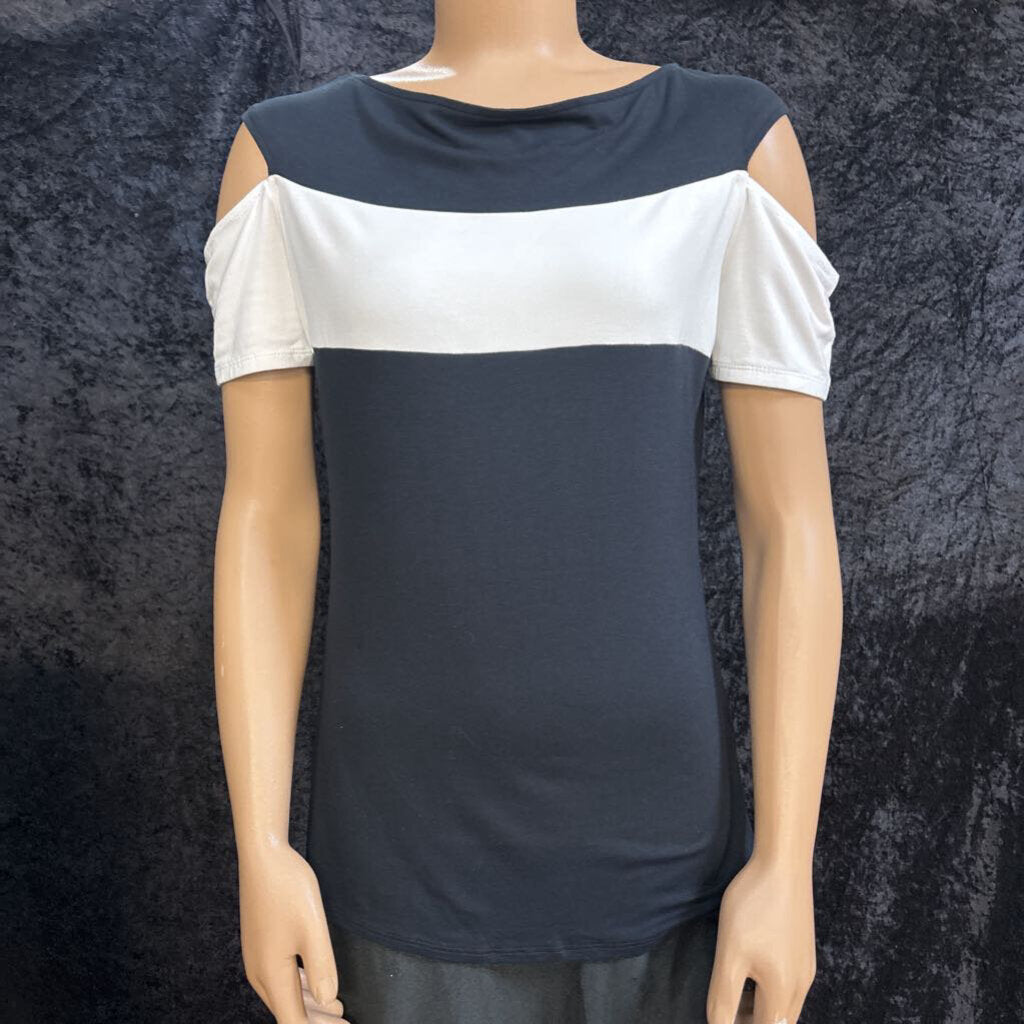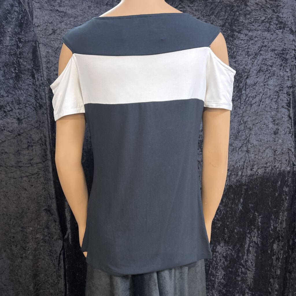venus Open Shoulder Large Striped Women's Shirts Large Black/White