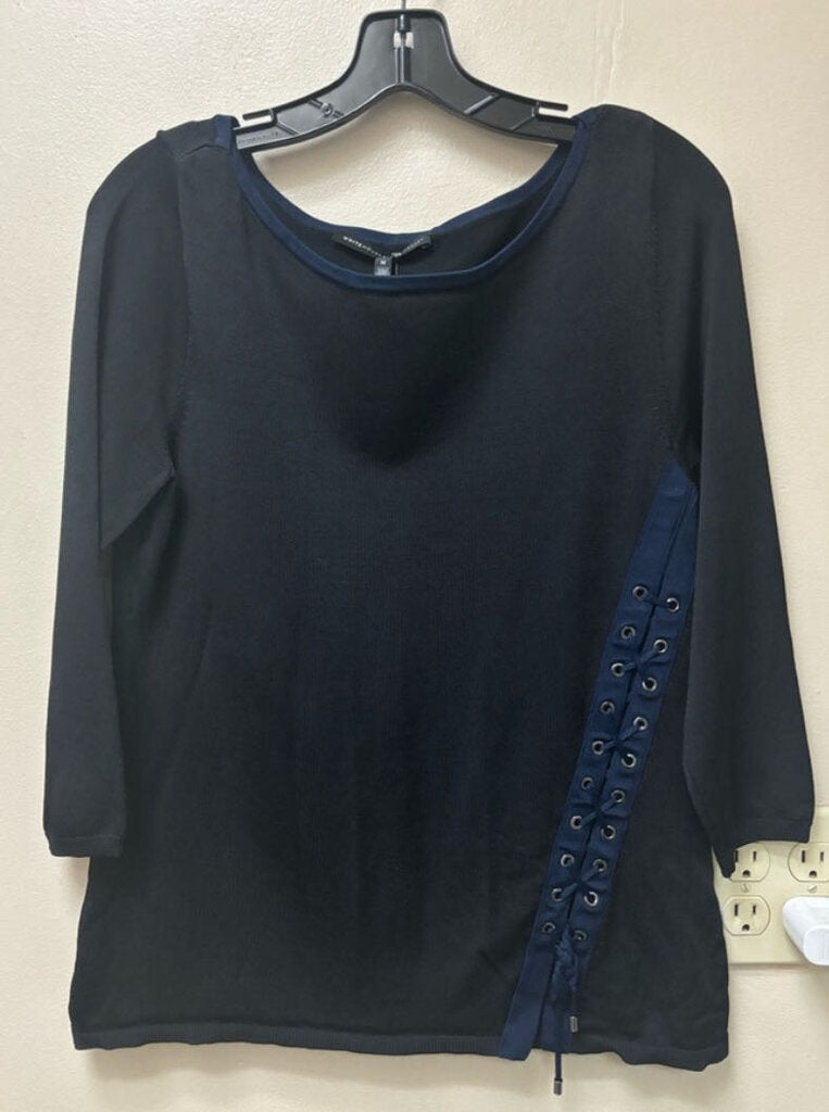white house black market black with blue trim side grommet tie Women's Shirts Med black/blue