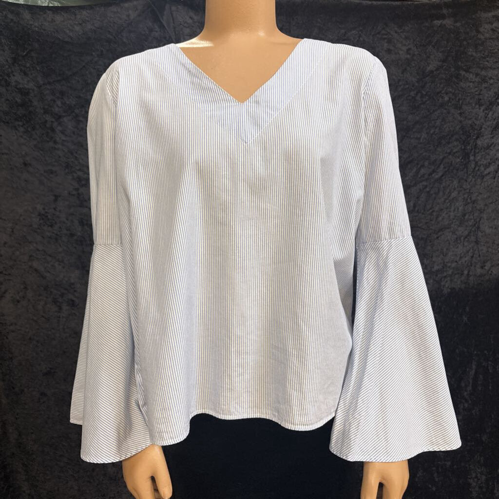 zara woman Pinstriped v neck with bell sleeves Women's Shirts L Blue, white